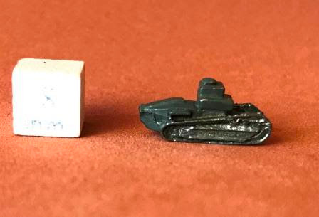 FF0006 - Ft-17 TSF Command Tank is a 6mm unpainted miniature manufactured by Scotia Grendel. The miniature was painted and placed along an 8mm white cube for comparison purposes. Although the miniatures appears in WWI range on the website of Scotia Grendel, rightfully, it appeared also on WW2 battlefronts.