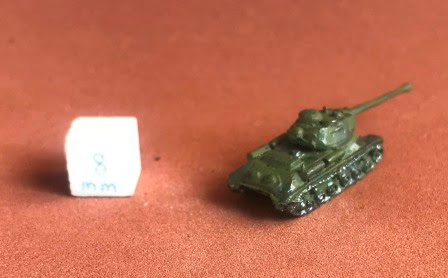 S16 - JS II is a 6mm unpainted miniature manufactured by Heroics and Ros (H&R). The miniature was painted and placed along an 8mm white cube for comparison purposes.