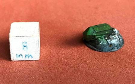 Obelisk 3 comes from Trolls under the Bridge from the miniature Necropolis Wraith. It can be used to place one of the wraiths on it, or as I decided as an objective marker in wargame. The base was made from a screw cover and putty and sand and pebbles, all painted, drybrushed, washed and highlighted.