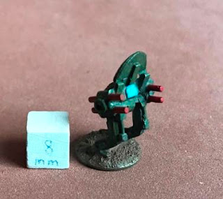 I have placed a 8mm cube next to the miniature to facilitate comparison.