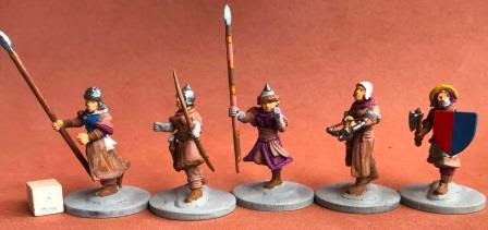 FGVP05 - Frostgrave Soldiers II is a 28mm unpainted set miniatures manufactured by North Star Military Figures for the Frostgrave fantasy skirmish wargame. The miniatures were painted and a photo of them was taken along an 8mm white cube for comparison purposes.